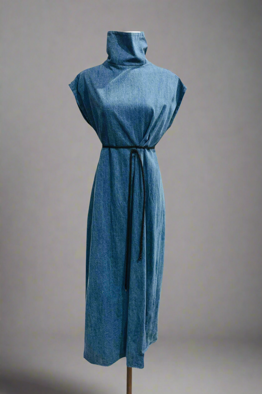 This ARSHYS Denim Dress features a high funnel neck, waist pleating and rope details. The design includes a straight and simple cut, without any zippers or buttons, for maximum comfort. Simply slip it on and make a stylish statement.